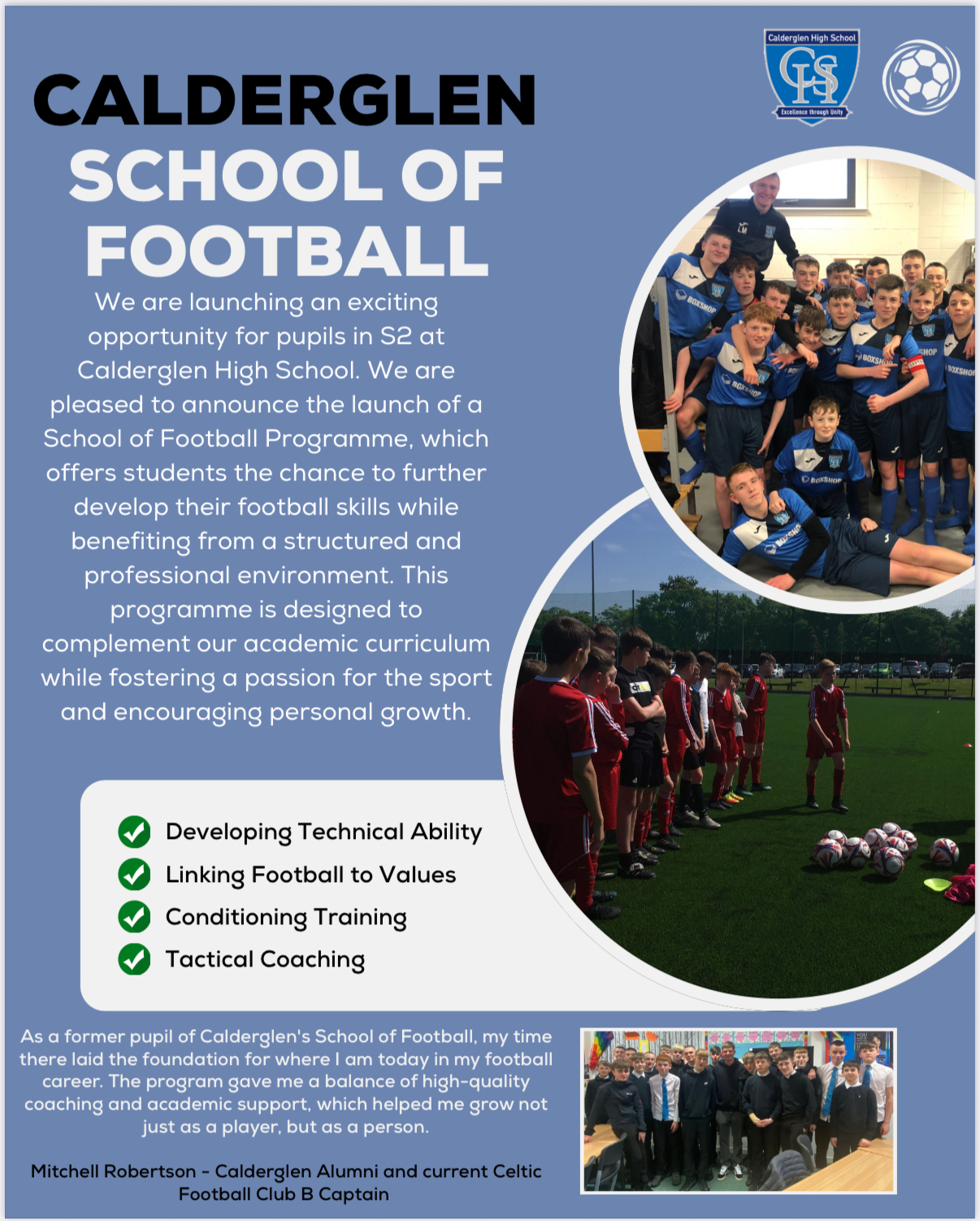 School of Football development. We are excited about the prospect of welcoming our talented S2 students to the School of Football Programme and look forward to seeing the growth and success